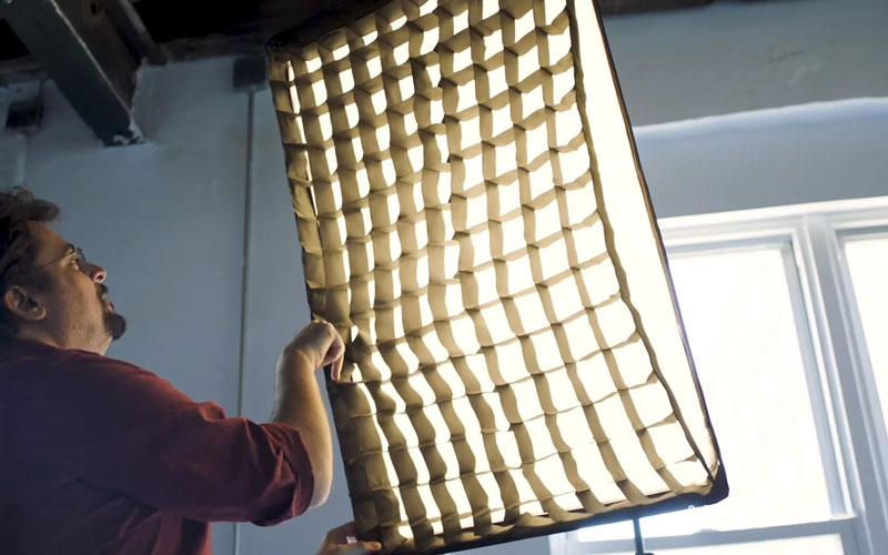 گرید یا زنبوری، یک شبکه پارچهای یا پلاستیکی است که در جلوی سافت باکس نصب میشود. وظیفه اصلی گرید، محدود کردن زاویه تابش نور و جلوگیری از پخش شدن (Spill) آن به اطراف است. با استفاده از گرید، نوری متمرکزتر و جهتدارتر خواهید داشت که برای جداسازی سوژه از پسزمینه یا نورپردازی دقیق یک بخش خاص از صحنه بسیار کاربردی است.