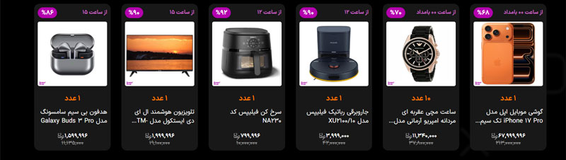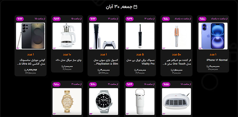 این دسته معمولاً مقصد اصلی کاربرانی است که به دنبال خرید کالاهای تکنولوژی با بیشترین مقدار تخفیف هستند، بهویژه در بازههای زمانی محدود که موجودیهای جذاب به سرعت تمام میشوند.