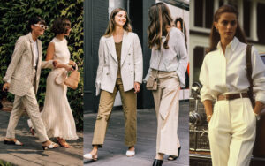 کت و شلوار خوشدوخت، پیراهن ساده، ترنچ کت، کفش چرمی و اکسسوریهای مینیمال از آیتمهای کلیدی این سبک محسوب میشوند.