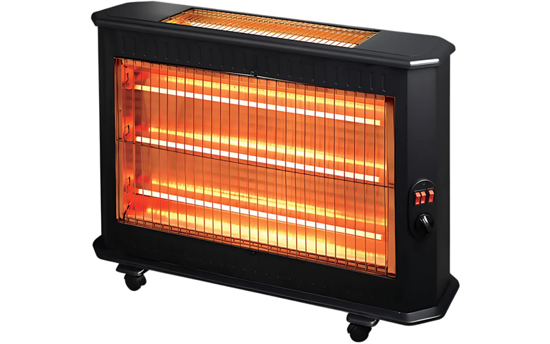 این نوع بخاری که به آن هالوژنی یا کوارتزی نیز میگویند، گرما را از طریق تابش مستقیم به اشیاء و افراد منتقل میکند، درست مانند گرمای خورشید. آنها برای گرم کردن یک نقطه خاص و محدود ایدهآل هستند. مصرف برق آنها بسته به تعداد المنتها متغیر است و معمولاً از ۵۰۰ وات شروع شده و تا ۲۰۰۰ وات نیز میرسد. این مدلها برای فضاهای بزرگ یا دارای رفتوآمد زیاد کارایی کمتری دارند.