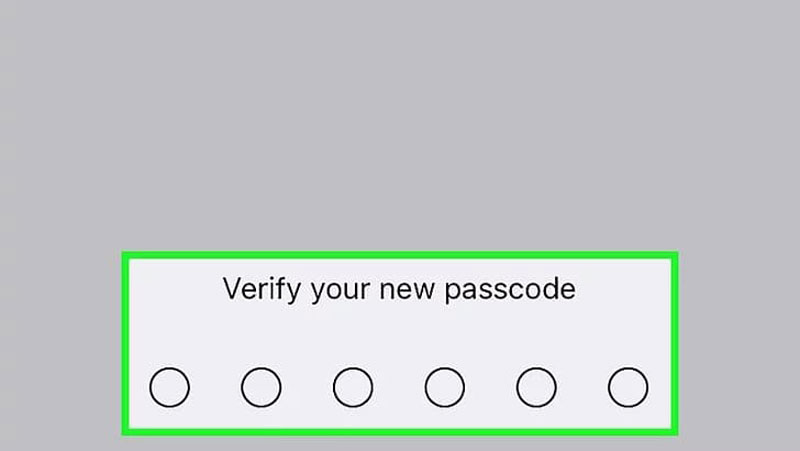 مرحله ۷: تایید رمز جدید: پس از وارد کردن رمز جدید، سیستم از شما میخواهد که برای تأیید، آن را یک بار دیگر دقیقا به همان شکل وارد کنید (Verify your new passcode). این کار برای جلوگیری از خطاهای تایپی انجام میشود.