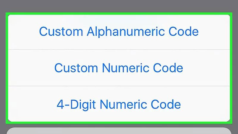 گزینههای مختلف رمز عبور آیفون