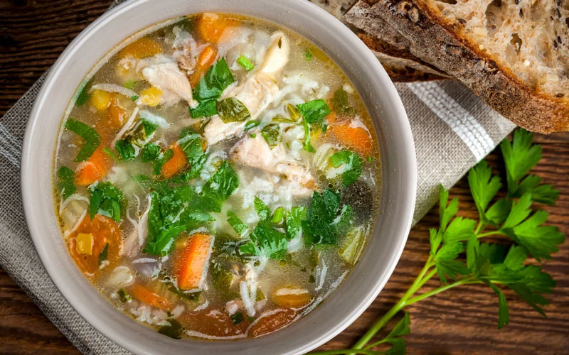 این یک درمان قدیمی و اثباتشده است. سوپ مرغ نه تنها مایعات و مواد مغذی مورد نیاز بدن را تأمین میکند، بلکه بخار حاصل از آن به باز شدن مجاری بینی و تسکین مجاری تنفسی کمک میکند. برخی تحقیقات نشان میدهند که سوپ مرغ دارای خواص ضدالتهابی ملایمی نیز هست.