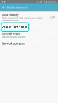 گزینه نامهای نقطه دسترسی (Access Point Names) یا APN را پیدا کرده و روی آن کلیک کنید.