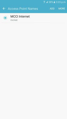 پس از وارد کردن این اطلاعات، روی منوی سهنقطه در بالای صفحه ضربه بزنید و گزینه ذخیره (Save) را انتخاب کنید. سپس به لیست APNها بازگردید و مطمئن شوید دایره کنار MCI-ّInternt