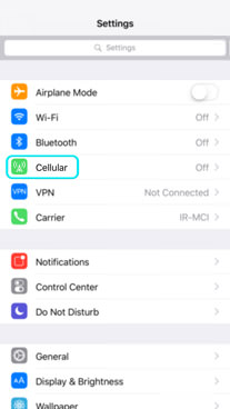 - روشن بودن داده همراه: مطمئن شوید گزینه Mobile Data یا Cellular Data در گوشی شما فعال است.