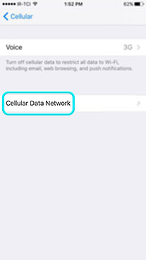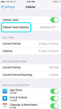 مطمئن شوید که گزینه Cellular Data روشن (سبز رنگ) است. حالا وارد قسمت Cellular Data Options شوید.