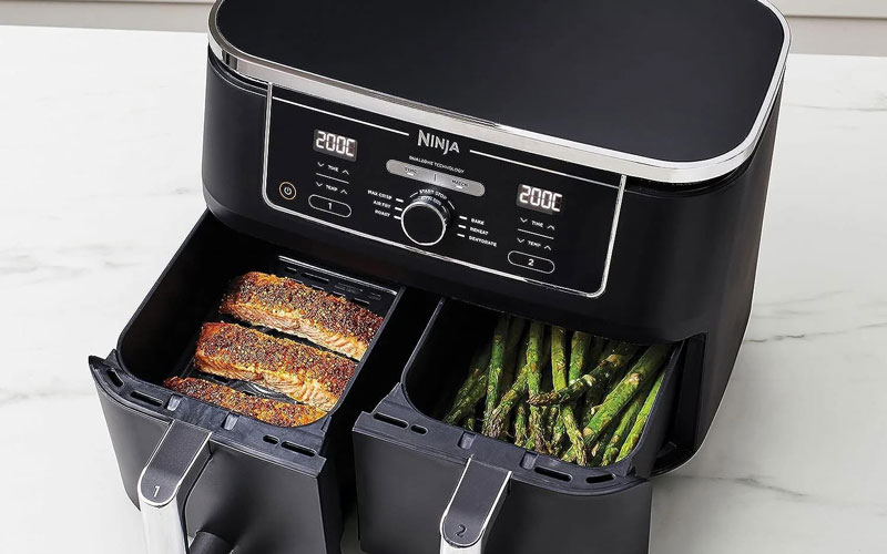 - فناوری DualZone: مدلهای دارای دو سبد، امکان پخت همزمان دو غذای مختلف با برنامهها و دماهای متفاوت را فراهم میکنند که برای خانوادههای بزرگ یا صرفهجویی در زمان ایدهآل است.