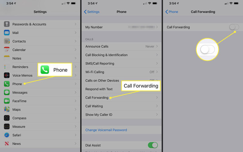 برای غیرفعال کردن، کافیست در همان مسیر، کلید Call Forwarding