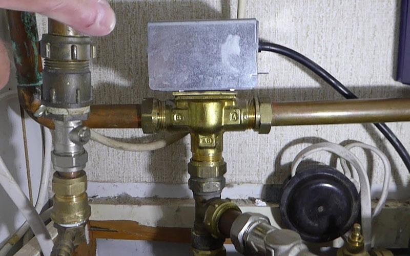 در پکیجهای دو مبدله، قطعهای به نام “شیر سه طرفه” (Three-way Valve) وظیفه دارد مسیر آب گرم را بین مدار گرمایش (شوفاژ) و مدار آب گرم مصرفی جابجا کند. اگر این شیر در حالت آب گرم مصرفی گیر کند، حتی با قرار دادن پکیج در حالت زمستانه، آب داغ به سمت رادیاتورها هدایت نخواهد شد.