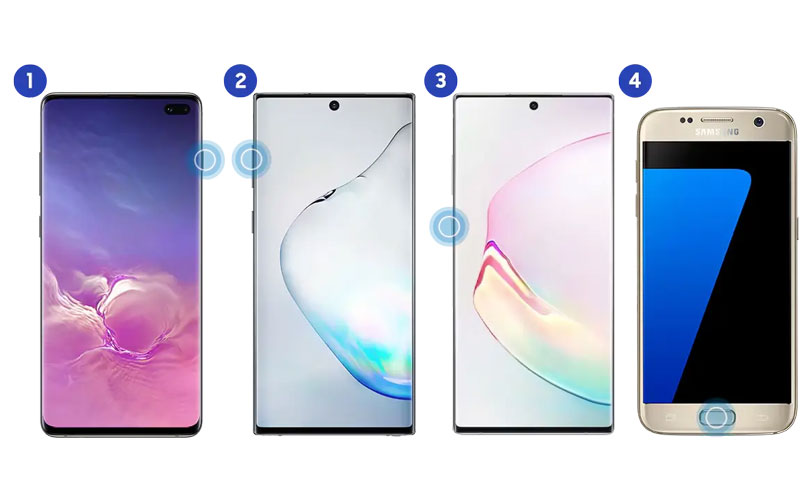 - در گوشیهای قدیمی (دارای دکمه هوم): در مدلهای قدیمیتر سامسونگ که دکمه فیزیکی هوم در پایین نمایشگر قرار دارد، باید به طور همزمان دکمه هوم (Home) و دکمه پاور (Power) را فشار دهید.