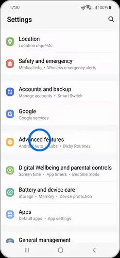 به بخش ویژگیهای پیشرفته (Advanced features) بروید.