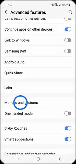 گزینه حرکات و اشارهها (Motions and gestures) را انتخاب کنید.