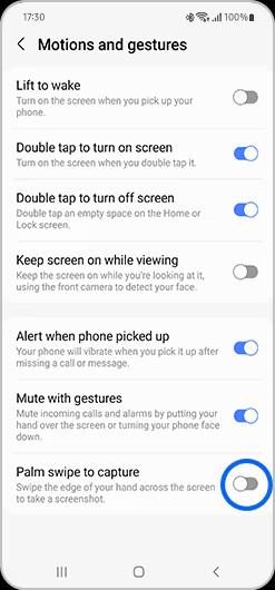 در این صفحه، کلید مربوط به Palm swipe to capture را فعال کنید.