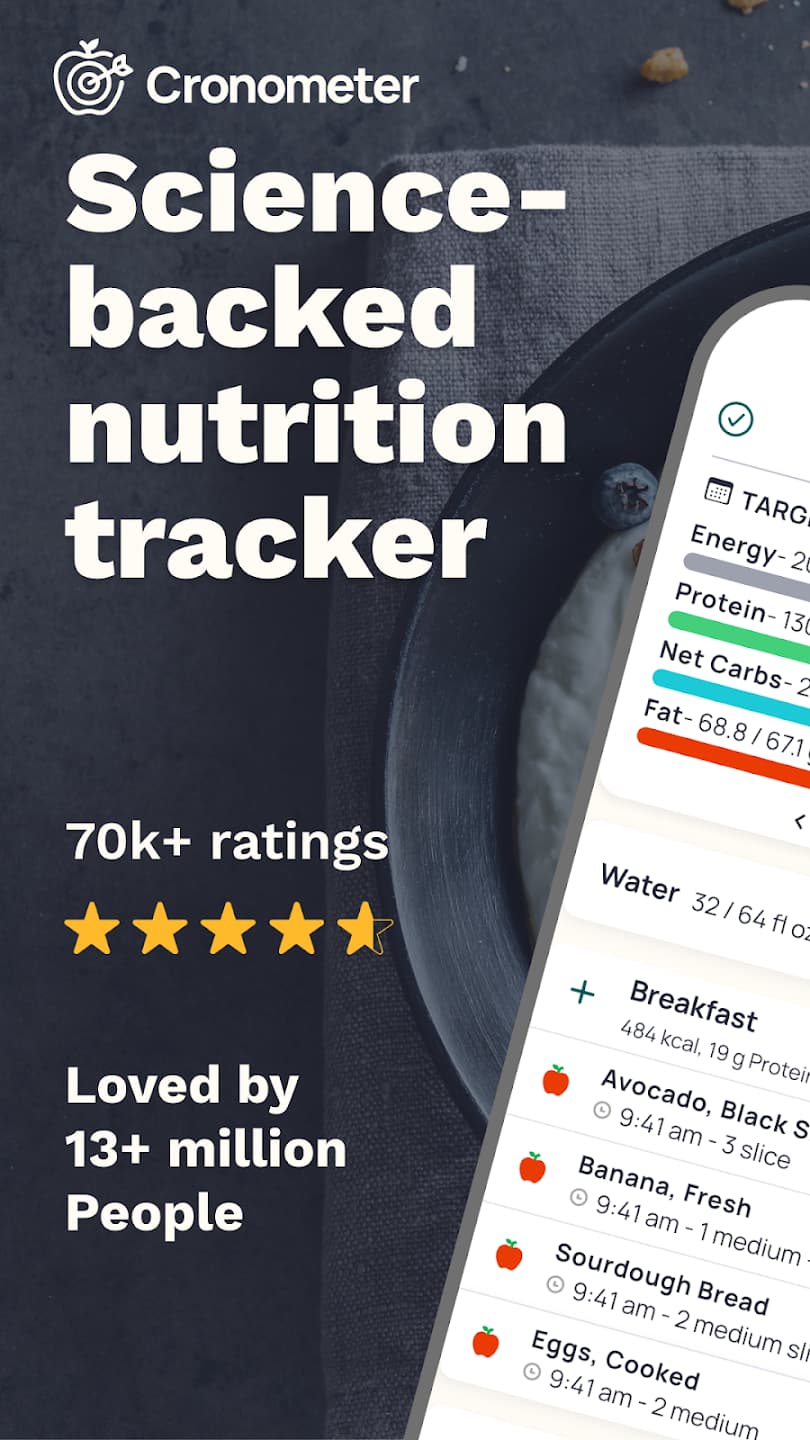 Cronometer | افراد دقیق، رژیمهای خاص | ردیابی دقیق ریزمغذیها | فریمیوم |