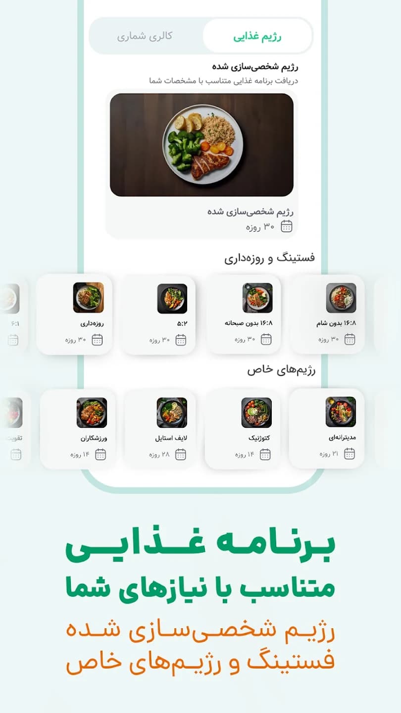 - ارائه برنامههای غذایی متنوع و متناسب با اهداف مختلف (مانند رژیم پالئو، روزهداری متناوب)