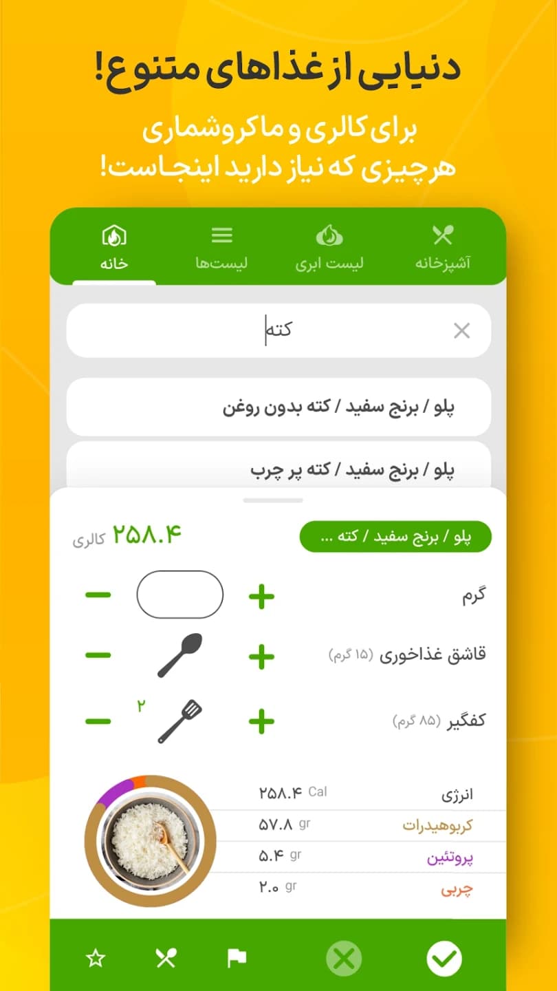 - پشتیبانی کامل از زبان فارسی و واحدهای اندازهگیری ایرانی (مانند قاشق، کفگیر)