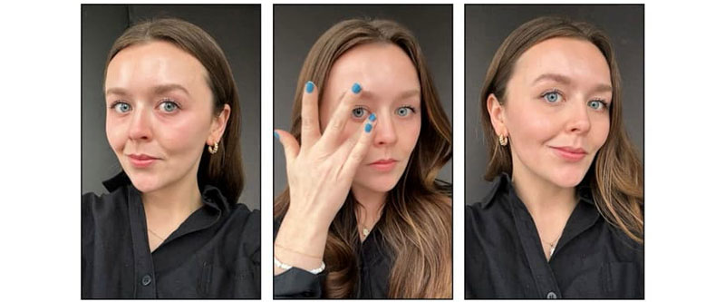 - پخش کردن کرم و ضربه زدن: با استفاده از انگشت حلقه یا انگشت کوچک (چون فشار کمتری اعمال میکنند)، کرم دور چشم را به آرامی به پوست زده و آرامآرام ضربه بزنید. پوست اطراف چشم ظریف است؛ بنابراین از مالش یا کشیدن شدید خودداری کنید؛ زیرا میتواند منجر به تحریک شود.