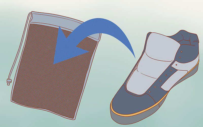 پس از خشک شدن کامل کفش، مقداری جوش شیرین داخل آن بریزید و اجازه دهید برای چند ساعت باقی بماند تا بوی نامطبوع را به خود جذب کند.