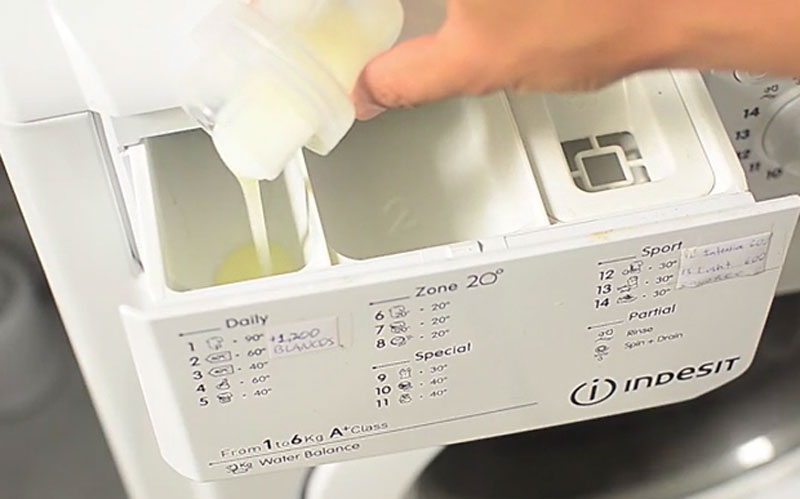 - مقدار کم: از مقدار کمی شوینده، تقریباً نصف مقداری که برای یک بار شستشوی معمولی لباس استفاده میکنید، بهره ببرید. استفاده بیش از حد از مواد شوینده میتواند باعث باقی ماندن کف روی کتانی و ایجاد حس چسبندگی شود.
