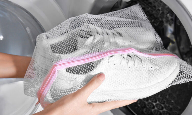 هرگز کتانیها را به صورت مستقیم داخل دیگ ماشین لباسشویی نیندازید. ضربات ناشی از چرخش کفش میتواند هم به دیگ ماشین و هم به خود کتانی آسیب بزند. برای جلوگیری از این مشکل، کتانیها را داخل یک کیسه شستشوی توری (Mesh Bag) یا یک روبالشی قدیمی که در آن را گره زدهاید، قرار دهید. این کار شدت ضربات را به حداقل میرساند.