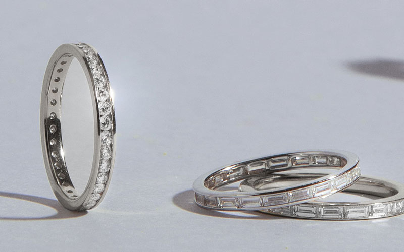 - طلا سفید: آلیاژهای طلا (بهویژه با نیکل و پالادیوم) سختتر و مقاومتر از نقره هستند. روکش رودیوم نیز یک لایه محافظ اضافی در برابر خراش ایجاد میکند. به همین دلیل، طلا سفید انتخاب محبوبی برای حلقههای نامزدی و ازدواج است که به صورت روزانه استفاده میشوند.